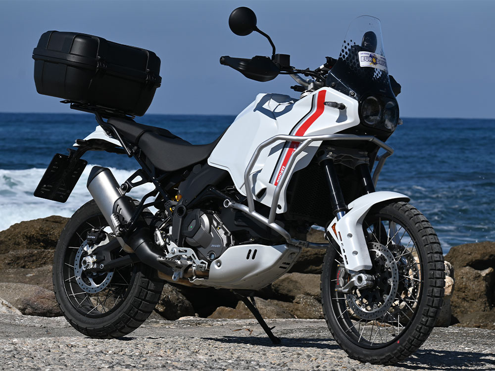 Die Ducati DesertX ist ein echtes Adventure-Enduro-Motorrad, das entwickelt wurde, um die schwierigsten Gelände mit Komfort und Sicherheit zu meistern. Inspiriert von den Rallye-Bikes der 80er Jahre, verbindet sie Vintage-Design mit moderner Technologie und Leistung.
