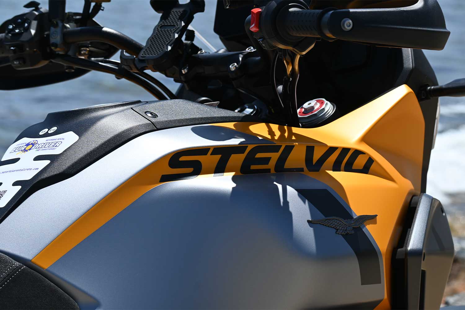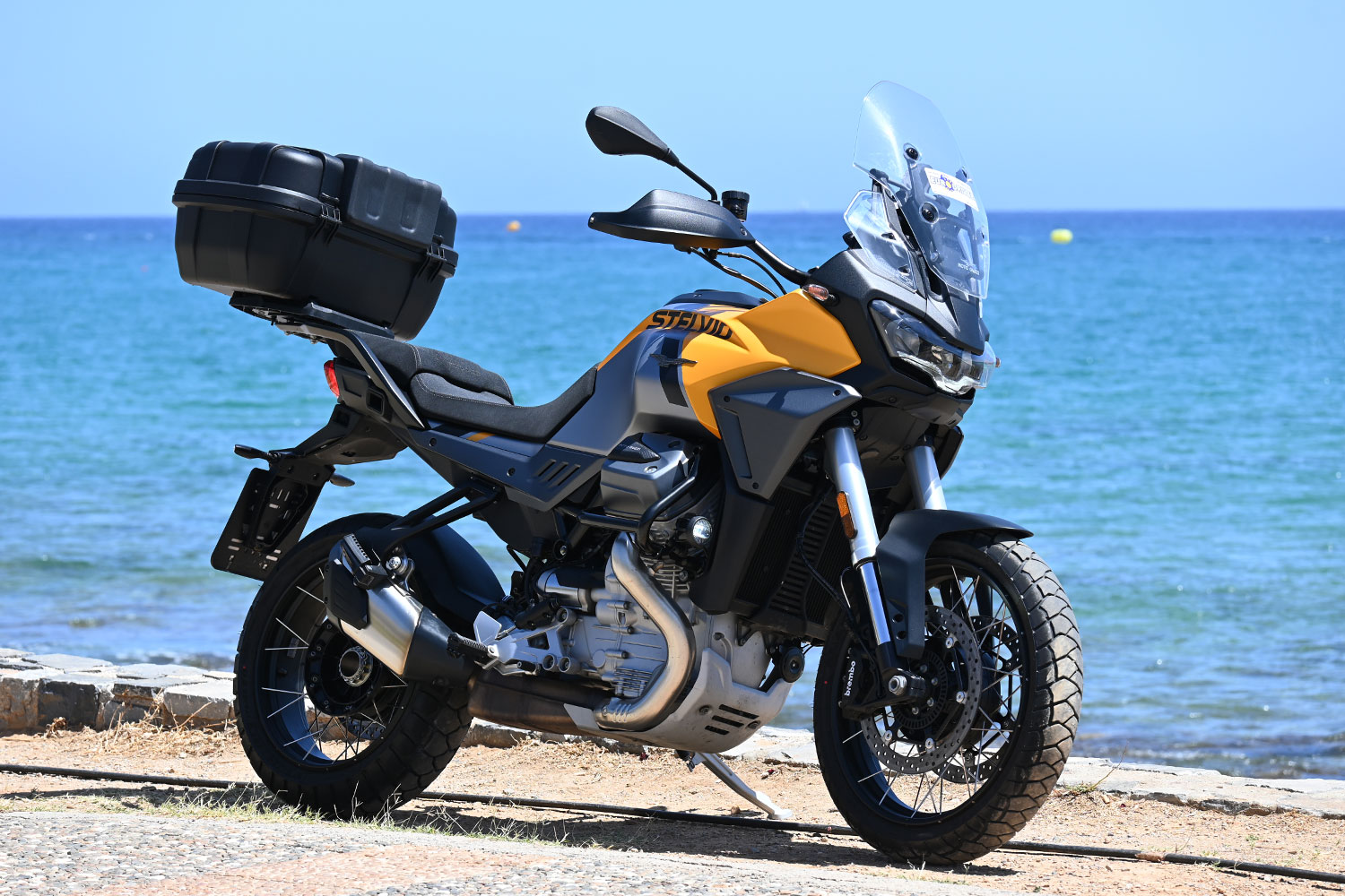Die Moto Guzzi Stelvio 1000 kehrt 2024 komplett überarbeitet zurück und verbindet klassisches italienisches Design mit moderner Technologie und Adventure-Touring-Fähigkeiten. Ausgestattet mit dem neuen 1.042 cm³ quer eingebauten V2-Motor von Moto Guzzi, bietet sie kräftiges Drehmoment, eine komfortable Sitzposition und fortschrittliche Elektronik für maximale Sicherheit und Fahrspaß auf jeder Strecke. Mit halbaktiver Federung, Radarsystem für Fahrassistenz und erstklassiger Ergonomie ist sie bereit, sowohl Asphalt als auch anspruchsvolle Routen zu meistern.