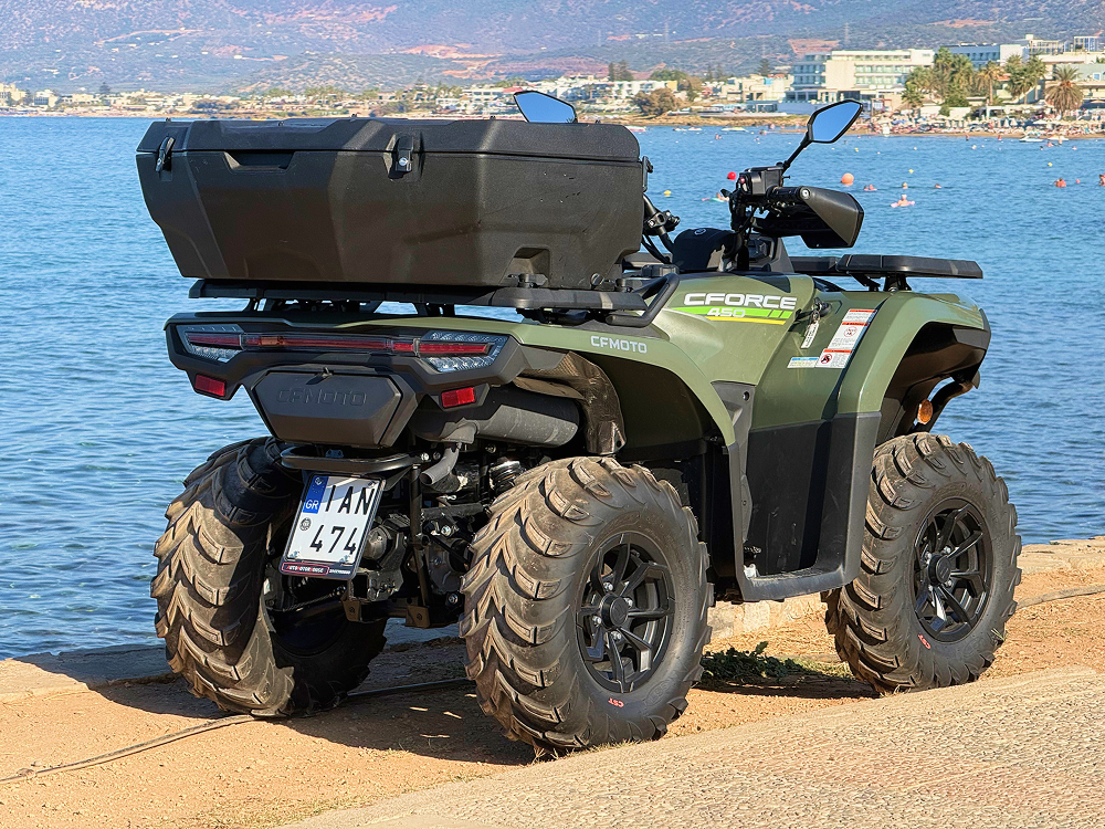 Explore Crete with the new CF MOTO 450, a modern ATV designed for smooth and safe riding on public roads. With its powerful engine and easy handling, it’s perfect for couples or friends looking to enjoy scenic routes across the island in total comfort.