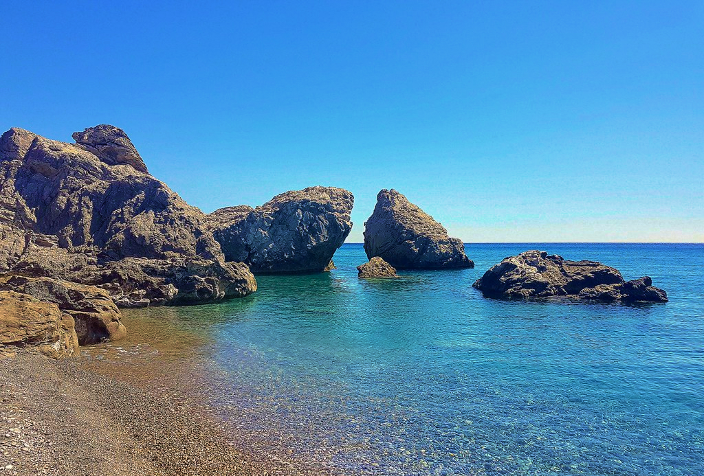 A beach suitable for endless explorations and adventures. Maridaki is a beach with pebbles and gravel, surrounded by rocks that make its coves even more impressive. The caves enhance the beauty of the area and make it ideal for adventures. The beach is also the outlet of two gorges, which on calmer days await your discovery, while on hotter days you can relax beside the cool waters of the stream that flows into the sea. The water comes directly from the sources of the impressive waterfalls of Lichnistis. The combination of all these elements makes the beach geophysically rich and an important place for exploration, hiking, diving, climbing, and driving, since the road to Tsoutsouras through Mesochori is adventurous and impressive, while you also have the chance to stop at the palm forest of Agios Antonios.